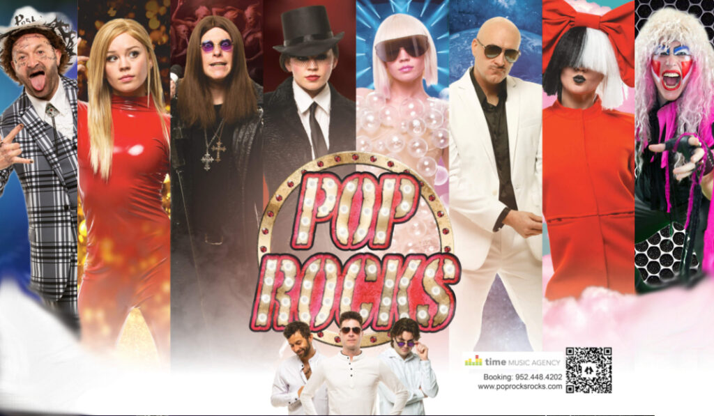 PopROCKS! is a high energy immersive experience — 3 powerhouse vocalists, 30+ costume changes, and spot-on impersonations of Lady Gaga, Ozzy Osbourne, Katy Perry, Garth Brooks and more. More than a band. A full show.